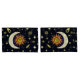 Estos coloridos fundas de almohadas muestran el sol y la luna, estrellas amarillas, cometas, asteroides y galaxias, con un fondo azul medianoche. Un accesorio insólito para la habitación.