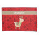 Celebra la magia de los Navidades con un toque de lujo sobrio. El monograma del personalizado muestra el nombre de su ser querido en un elegante frente de escritura. El adorable gráfico de renos presenta un estilo beige y de coser a mano, colocado sobre un fondo festivo rojo y negro.