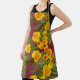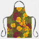Estas amapolas doradas son como un rayo de sol, puestas sobre un fondo de color vino tinto con hojas verdes. Por Melissa J Barrett