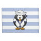 El pingüino náutico rayó características de la funda de almohada que un pingüino lindo se vistió en un uniforme de la marina de guerra en un fondo de rayas horizontales azules claras. Hace un gran acento para cualquier dormitorio. Añada el texto si está deseado. ¡También hace un gran regalo! ¡Esté seguro de comprobar hacia fuera hacer juego el duvet!