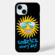 Si usas llaves, realmente puedes usar BRACE todos los días con esta divertida cubierta de teléfono de diseño personalizado. Fondo negro con un sol alegre que usa gafas de sol y muestra sus cordones ortodoncicos. Ideal para niños y adultos.