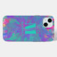 Resumen del estuche para iPhone con personalizado de agua con gota de agua. Coloridas y audaces obras de arte de acuarela abstractas, pintadas por la artista Catherine Sweetman con pinceladas orgánicas azul, agua, verde azuladas, rosa y violeta. Esta ráfaga de colores brillantes es fácil de personalizar añadiendo tu monograma inicial y nombre para crear un estuche de teléfono de moda y divertido.