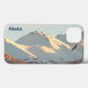 Un águila calva (Haliaetus leucocephalus) vuela frente a la cordillera Chugach cubierta de nieve cerca de Anchorage, AK. También aparece el texto de personalizable "Alaska".