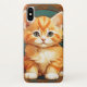 Estuche para iPhone con un gato naranja al estilo de Alphonse Mucha! Este adorable gatito con ojos verdes está enmarcado por hojas de otoño. ¡Un regalo maravilloso para los amantes del gato y de los coleccionistas Art Nouveau!
