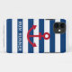 Un ancla roja con las rayas de azules marinos y el nombre de su barco o de su nombre