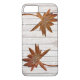Estuche para iPhone, apenas allí, con un diseño de nenúfares dorados sobre un fondo de madera imitación. Gracias a los recortes de diseño por el fondo del funda.