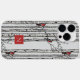 Este moderno estuche de teléfono monogramado de invierno y temporada de vacaciones cuenta con abedules dibujados a mano con pájaros cardenales rojos encaramados en ramas con tinta negra, en un elegante fondo gris suave. Personalice con su monograma.