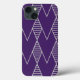 Este estuche de teléfono tiene un diseño art deco de diamantes en plata en un campo de azul.