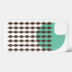 Este estuche de teléfono tiene un diseño moderno de mediados de siglo con un círculo verde-mar con cadenas de diamantes marrones.