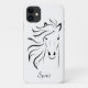 Imagen moderna de silueta de caballo en estuche para iPhone blanco. El texto se puede personalizar.