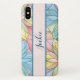 Vidrio color rosa pastel y vidrieras azules son Fundas de iPhone X personalizados con tu nombre. Cambie el nombre usted mismo cuando solicite.