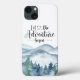 Que la aventura comience el tema acuarela caso iphone para aventureros al aire libre que aman el desierto, el mochilero, el camping y la naturaleza. Estilo de los bosques de las montañas.