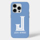 Este mínimo monograma azul iphone 15 pro funda está a la moda y es profesional. Presenta tu primera versión inicial en un tipo de letra atrevido y moderno y tu nombre en un tipo de letra clásico de coordinación en blanco. Es simple y elegante.