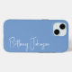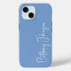 Este funda monogramado azul iphone 15 es moderno y clásico. Incluye tu nombre en un fabuloso y moderno tipo de letra en blanco. Es simple, mínimo y profesional.
