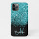 Purpurina azul verde azulado, personalizado con su nombre y Funda iPhone 11 Pro monograma. Estuche de teléfono móvil.