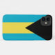 La bandera de las Bahamas muestra un triángulo equilátero negro a la izquierda que representa la unidad y la determinación del pueblo de las Bahamas. El triángulo se orienta hacia tres franjas de igual ancho que simbolizan las zonas de recursos naturales; dos rayas acuamarinas en la parte superior e inferior de la bandera que representa el mar y una franja dorada que representa la tierra. La bandera fue adoptada el 10 de julio de 1973.