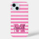 Su monograma inicial y su nombre en letras de moda sobre un fondo de rayas rosas y blancas hacen que su estuche de teléfono sea una declaración de moda divertida. ELIJA SU MARCA y MODELO cuando solicite. Personalizar para usted o dáselo como regalo. MÁS colores en nuestra colección.