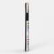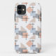 Este estuche de teléfono tiene un diseño Bauhaus de rectángulos repetidos, cuadrados, diamantes y triángulos en colores de playa de bronceado, gris, azul y naranja.