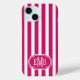 Customize this berry and white striped iPhone 15 case with your initials in a modern CAP font in white on berry. It's so modern and trendy yet preppy and classic!