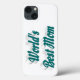 Phone case with World's best Mom in 3D green text. Available for several phone styles.