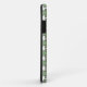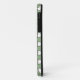 Este estuche de teléfono tiene un diseño art deco de triángulos y diamantes que parecen bolas en verde claro y verde sabio.