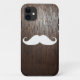 Funda De Case-Mate Para iPhone Bigote blanco divertido en fondo de madera de