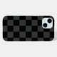 Estuche de diseño para teléfono de impresión de tablero de ajedrez boho en tonos grises y negros de carbón oscuro. Utilice las herramientas de diseño para agregar su propio monograma, nombre u otro texto, o cambie el color de fondo para crear uno único de los tipos de cobertura del dispositivo.