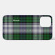 Bonito funda para iPhone 12 hecho en el estrado de color azul oscuro, blanco y verde Black Watch Dress. Personaliza el texto blanco, corriendo por el lado izquierdo, para ti mismo o como una gran idea de regalo. Forma elegante de proteger tu equipo electrónico.
