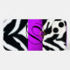 Elegante, elegante, colorido diseño único; rayado patrón de piel de cebra salvaje con una brillante piedra de gema púrpura. Puede mover o cambiar el tamaño de la piedra de gema a personalizar con sus iniciales y su propio texto.