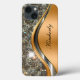 Diseño de funda de smartphone con clase para iPhone creado con un patrón de joyas brillantes simuladas impresas digitalmente en la cubierta en un emblema de monograma de color plateado y dorado que puedes personalizar para hacerlo tuyo. Lleva tu teléfono celular con un estilo de glamour y brillo con un destello de bling.