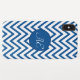 Vestir y proteger su iPhone con un patrón de chevron con un elemento de diseño de círculo redondo que es personalizado monogramado con sus iniciales de nombre y apellido en un tipo de letra Script elegante.Color azul y blanco. Personalice fácilmente este funda con su nombre/inicial/monograma
