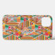 Este estuche de teléfono tiene un diseño Boho de diamantes con diferentes patrones en entonces en una paleta de colores Boho.
