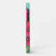 Un estilizado y vibrante cuadro floral de cosmos en muchos tonos rosas en un jarrón de vidrio sobre un fondo turquesa en una caja para iPhone de la popular Lisa Lorenz