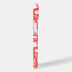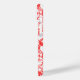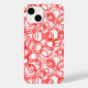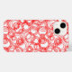 Este estuche de teléfono tiene un diseño moderno de mediados de siglo de círculos concéntricos rojos dispersos por todo el diseño.