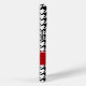 En este estuche para iPhone se presenta un patrón de patas rojas y negras. ¡Fácilmente personalizable con tu nombre!