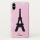 Esta París elegante inspiró características del caso 4/4s del iPhone una torre Eiffel rosada y negra en un fondo swirly rosado y el nombre o texto de su opción.