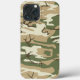 Estuche de teléfono de patrón de camuflaje en verde y marrón descolorido. Disponible para los modelos más recientes de iPhone y Galaxy.