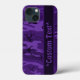 Patrón de camuflaje funda de smartphone en morado oscuro con campo de texto editable. Personalizar con hasta 15 letras, números o símbolos.