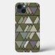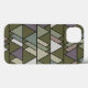 Este estuche de teléfono tiene un diseño moderno de mediados de siglo de triángulos superpuestos que se ejecutan horizontalmente en colores de camo.