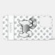 El original ilustracion personalizado de Destei de un lindo perro de raza Shih Tzu de color blanco y plateado. Debajo del perro hay un área de texto personalizable de color gris para un nombre. El fondo tiene un patrón de huellas de perros grises.
