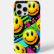 Esta funda de teléfono cuenta con un diseño divertido y juguetón con caras sonrientes brillantes y alegres y una estética de los 90. Está diseñada para ser una funda protectora, ultra delgada y ligera hecha de material de policarbonato duro o poliuretano termoplástico, que a menudo ofrece protección contra caídas de grado militar y compatibilidad con carga inalámbrica MagSafe.