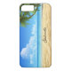 Caja tranquila del teléfono del iPhone 7 de la playa. Usted puede personalizar con su nombre. Arena y océano hermosos en su caja del teléfono.
