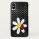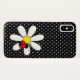 Este caso del iPhone 6 ofrece una mariquita roja y negra linda y de moda en un diseño de la margarita blanca en un fondo blanco y negro del lunar.