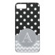 El diseño elegante femenino moderno lindo del caso con las rayas de Chevron zigzaguean y los modelos de lunares con inicial personalizada personalizado del monograma en una frontera del marco del círculo