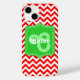 Un moderno estuche de teléfono Chevron Personalizado Monograma Chloe. Un patrón de chevron de niñas con rayas rojas. Para elegir el color de la banda que desee, haga clic en Personalizar - Editar - Fondo. ¡Un regalo perfecto para todo aquel que ame los patrones brillantes y ondulados!