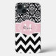 Muestra tu estilo de una manera divertida con este damasco blanco y negro y el chevron con acento rosa pálido personalizado funda.