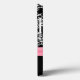 Funda para iPhone elegante, con un patrón de damasco negro y blanco, en la parte superior de la funda y un fondo negro sólido, en la parte inferior. Gráficos de una cinta rosa bonita y un lazo cruzan la funda entre los dos fondos. Texto en letra cursiva rosa, en la parte inferior, listo para personalizar. Una forma bonita de proteger tu iPhone y lucir elegante también, y es una excelente idea de regalo personalizado.