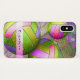 El funda duro para los chicas del iPhone del voleibol deportivo es glotono pero aún gaviota con bolas de voleibol multicolor brillantes con paneles rosados y violetas, amarillos y limínicos y un fondo abstracto de aspecto garrafal - personalizar con su nombre - de katz_d_zynes