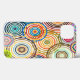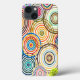 Este estuche de teléfono tiene un diseño moderno de mediados de siglo de una serie de círculos dentro del círculo en colores retro.