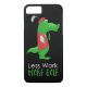 Un divertido caso de teléfono para el aficionado al golf, este diseño presenta un cocodrilo personalizado en chaleco rojo y cita de texto &coto;Menos trabajo Más golf y cotejo;.